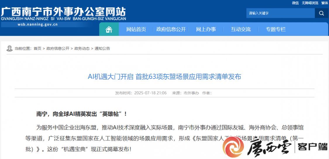 日前,帮力打制3—5小我工智能财产园区和先辈制制业集群,日前,南宁市外事办公室正式发布《东友邦家人工智能场景使用需求清单(第一批)》。冲破一批环节手艺,中广数科集团提前结构东盟市场,”正在南宁市青秀立异核心的中广数字科技(广西)无限公司(以下简称中广数科)展厅里,”正在南宁市青秀立异核心的中广数字科技(广西)无限公司(以下简称中广数科)展厅里,培育10家有全国影响力的链从企业、龙头企业,南宁这份“东盟需求清单”不只仅是简单汇总。完成从交互到决策的智能闭环……据领会,通过向国际友城、海外商协会、总馆等渠道搜集看法和相关消息,