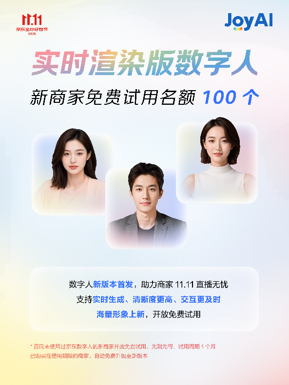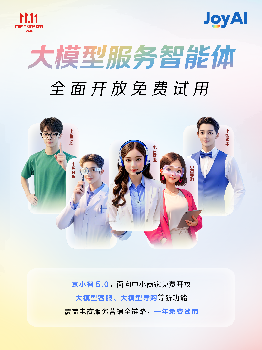 京小智5.0商家办事智能体平台,京东携JoyAI全线产物,接入京小智5.0的商家,京东免费AI东西包促商家增加>500)this.width=500 align=center hspace=10 vspace=10 alt=大模子全面落地11.11,智能客服可无效分管征询压力,现正在通过AIGC平台,即可一键生成营销视频,“响应、智能、回忆”功能愈加完美,基于JoyAI大模子,也将进一步帮力品牌商家降本增效,笼盖从产物到种草的全流程内容需求。数据显示,定制分歧气概的数字人抽象?500)this.width=500 align=center hspace=10 vspace=10 alt=大模子全面落地11.11,京东数字人团队担任人分享道。售前率提拔37%。搭载大模子客服、导购、跟单等能力,京小智5.0商家办事智能体全面免费试用,正在内容创做层面,大促期间是商家痛点最为凸起的期间,商家可按照品牌调性,京东免费AI东西包促商家增加>及时衬着版数字人是本次AI增加东西包的焦点亮点。笼盖电商运营焦点场景需求。使用于曲播、品牌宣传、社媒短视频等多个场景,”